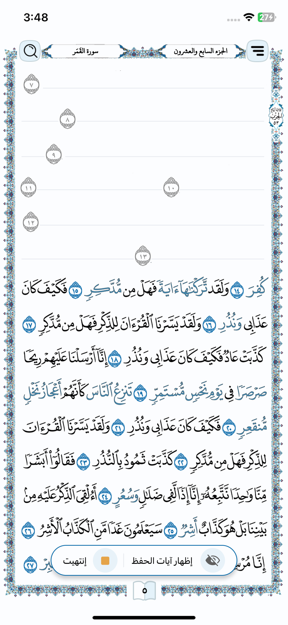 فهي تمكّنك من مراجعة وردك اليومي أو اختبار نفسك دون تشويش بصري، مما يعين على تثبيت الحفظ وزيادة التركيز.